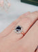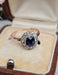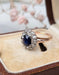 Bague ancienne (fin 19ème siècle) en Or rose 750/1000 (18 carats) et serti en Platine 850/1000. Elle est ornée d'un Saphir (env. 1 carat) et de douze Diamants taille rose (total env. 0.50 carat).
