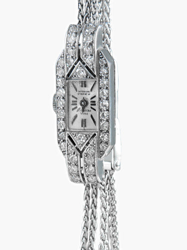 Montre Art Déco en or gris 18 carats et platine, sertie de diamants.
