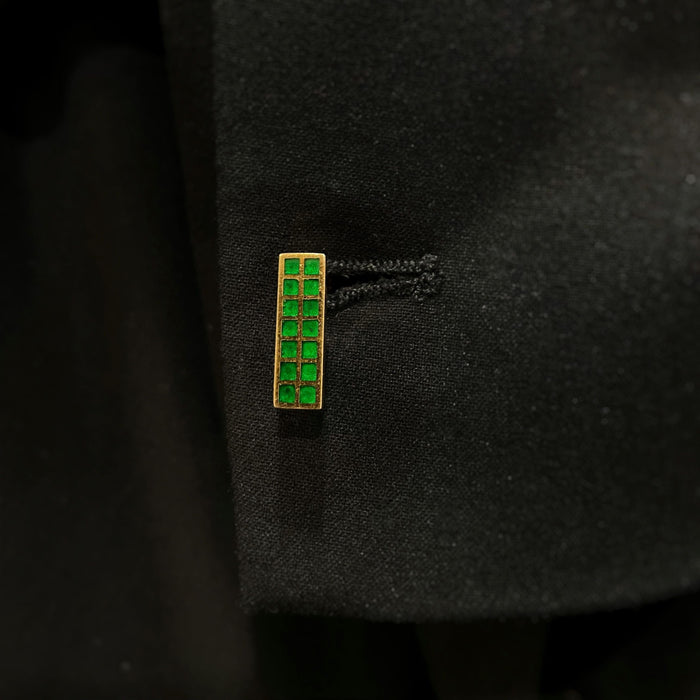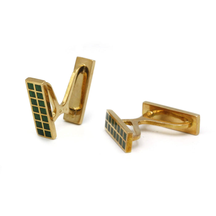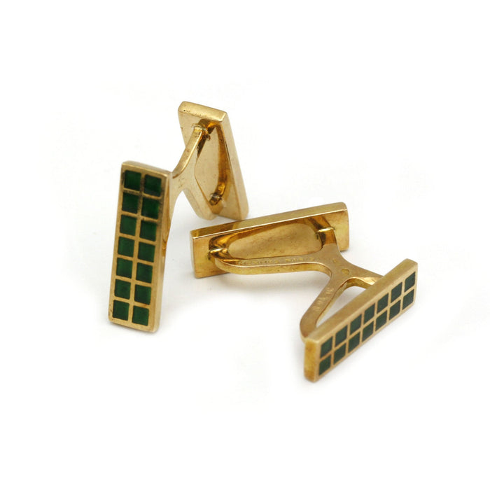 Boutons de manchettes signés HERMES PARIS et numérotés, probablement datés des années 80', en or jaune 750‰ et émail vert à carreaux.