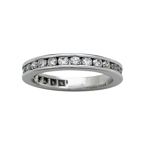 Une alliance en or blanc 750/000 entièrement sertie de diamants taille brillant, environ 0,60 carat au total.