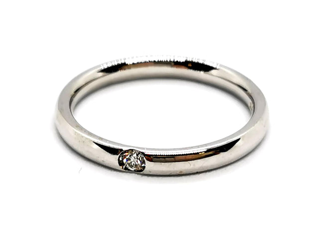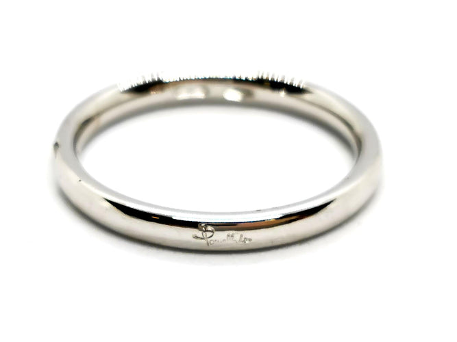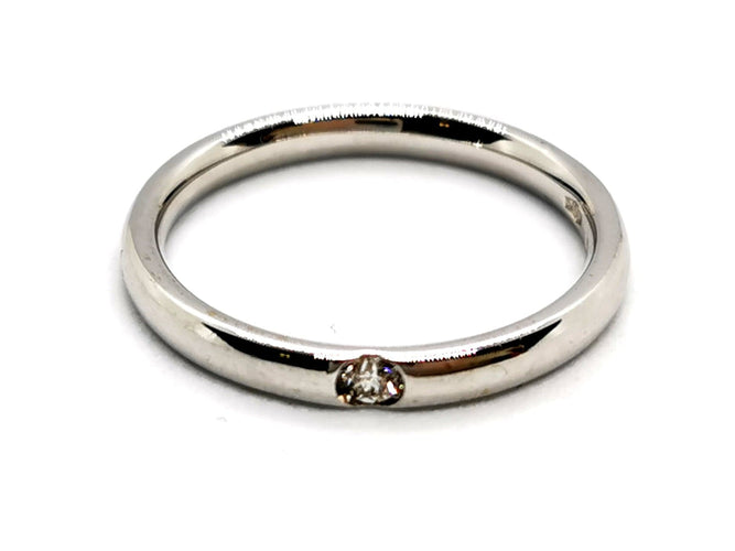 Bague signée de la maison Pomellato, collection Luciole, en or blanc 750 millièmes (18 carats) testé, sertie d'un diamant, taille brillant G/VS, d'environ 0,03 ct, tour de doigt : 52, largeur sur le dessus : 0,22 cm, poids total : 2,68 g, signée et numérotée : C120059075, prix neuf : 600 euros, excellent état