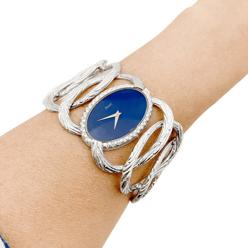 Montre vintage Piaget, "Limelight Magic Hour", or blanc, diamants, lapis lazuli.