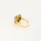 Marguerite en or jaune 18K (750 millièmes) avec en son centre un saphir taille ovale calibrant environ 0,50 carat entouré d'un pavage de 38 diamants en taille ancienne. Le panier de la bague est ajouré.