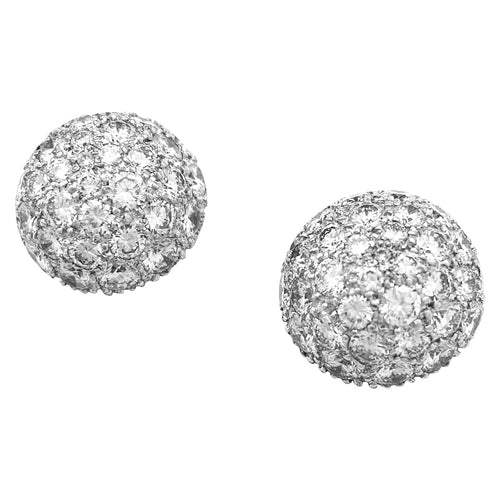 Une paire de boucles d'oreilles en or blanc 750/000 formant des demi-sphères entièrement pavées de diamants taille brillant.