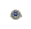 Bague marguerite vintage en or gris 18K et platine ornée d'un saphir et diamants