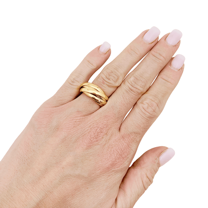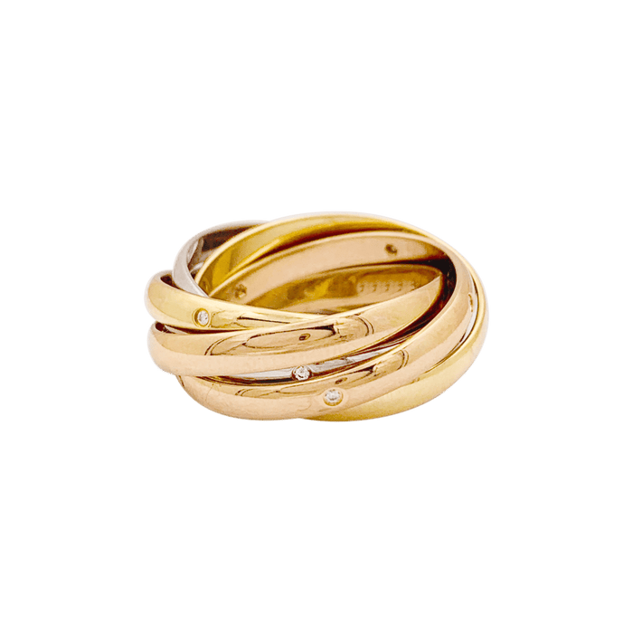 Bague Cartier "Trinity 6 anneaux" trois ors, diamants.