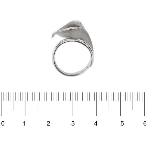 Bague en forme de fleur en or blanc avec tige, le pétale est opaque et le pistil en or jaune 18 kt avec 8 saphirs jaunes de 0,01 ct chacun. Calla Collection, la fleur emblématique de la marque, se caractérise par les jeux inévitables donnés par la finition Aetherna qui donnent profondeur et mouvement à la fleur.