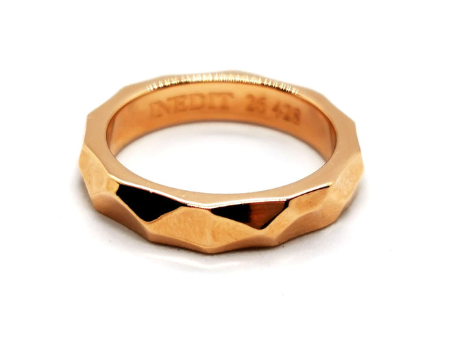Bague signée de la maison Inédit Joaillier, collection Météorite, en or rose 750 millièmes, taille : 50, largeur : 0,37 cm, poids total : 5,53 g, signée et numérotée : 26428, poinçon tête d'aigle, excellent état