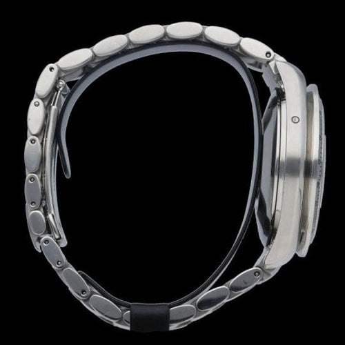Montre d'occasion - la montre ayant été ouverte pour être contrôlée et révisée en atelier, la garantie d'étanchéité d'origine ne peut plus être assurée hors pluie et éclaboussures.