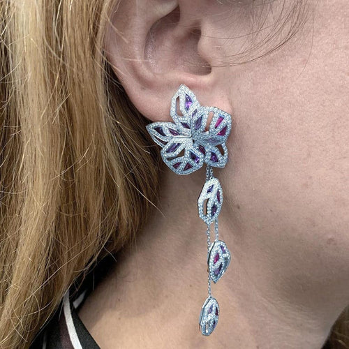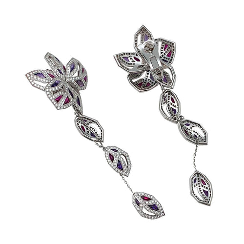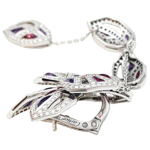 Boucles d'oreilles Cartier, "Caresse d'Orchidées", or blanc, rubis, améthystes et diamants.