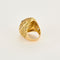 Bague dôme en or jaune 18K (750 millièmes) ciselée et ajourée à motif de fleurs sertie de cordièrite de taille ronde facetté et de citrine de taille rond facetté calibrant 0,20 carat environ chacunes.