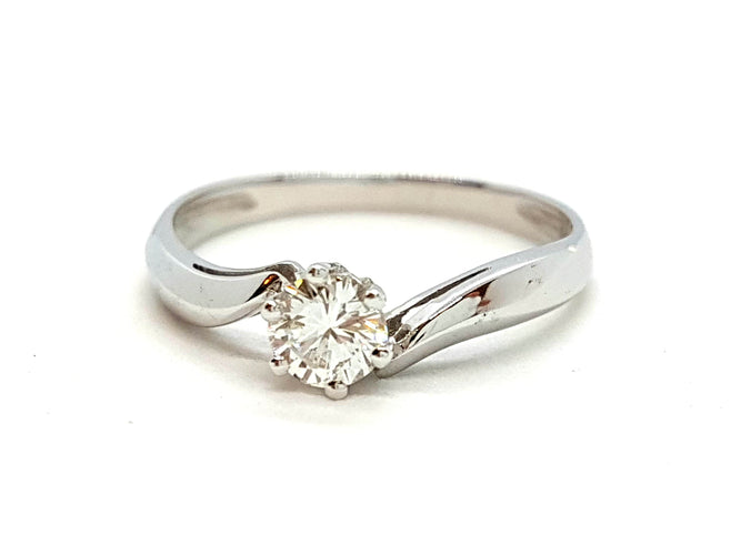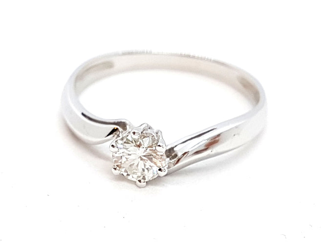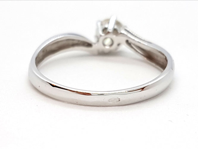 Solitaire en or blanc 750 millièmes (18 carats), serti d' un diamant taille brillant G-H V-SI d'environ 0,40 ct, tour de doigt: 56, largeur sur le dessus: 0,55 cm, poids total: 2,10 g, état neuf, poinçon tête d'aigle