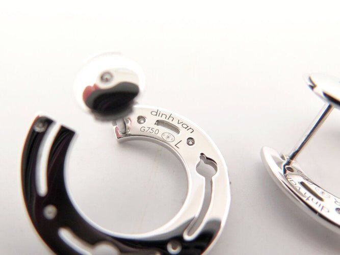 Bijoux de type boucles d'oreilles Marque : DINH VANModele : CREOLES PULSEReference fabricant : 828512Sexe : FemmeValeur du neuf : 2990 eurosListe des documents et accessoires fournis : PochonCARACTERISTIQUES :Matiere : or blanc 18kCouleur : DoreA noter : 8 diamants de taille brillants d'env. 0.14 ct au totalValeur du neuf estimative basee sur la derniere valeur connue ou un modele equivalentPresence de diamant : ouiPoids (en gr) : 5.5Dimensions : Longueur (mm) : 18.4Etat : Etat NEUFjamais portees - voir photos Reference : 265619