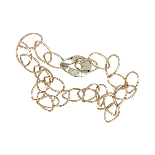 Un long collier signé de la maison Pomellato, modèle "Anni '70", formé de grands et fins maillons ovales en or rose 750/000 rassemblés par un large fermoir en or blanc 750/000.