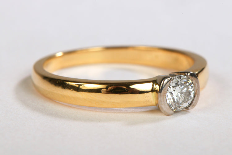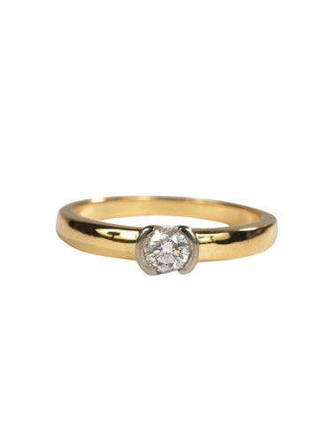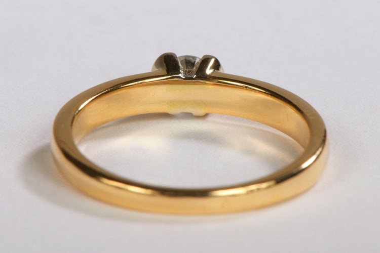 Solitaire en or jaune 750 millièmes (18 carats) et serti sur or blanc d'un diamant taille brillant, d'environ 0,20 ct, H-I, SI, Poids : 3.64 g, taille de doigt : 54, poiçonné, excellent état