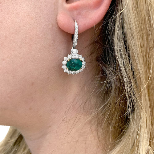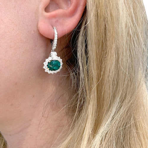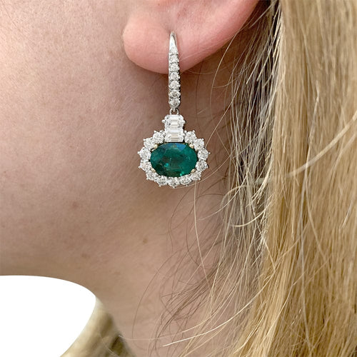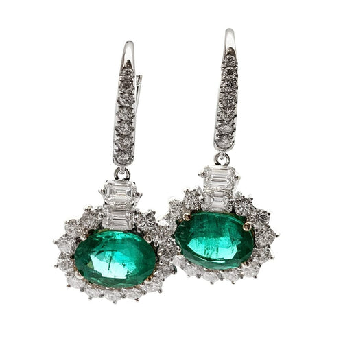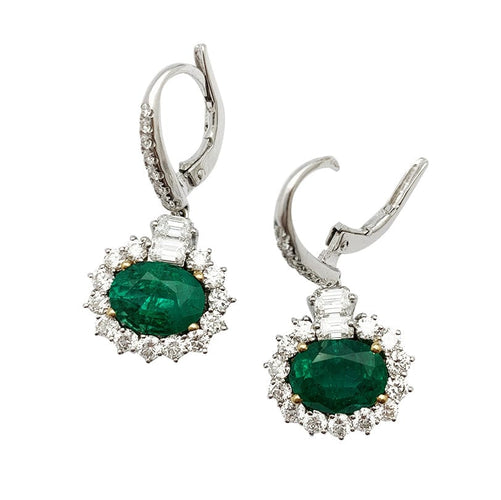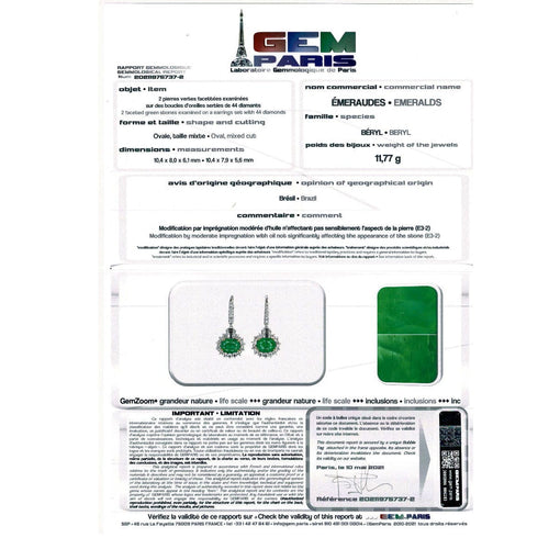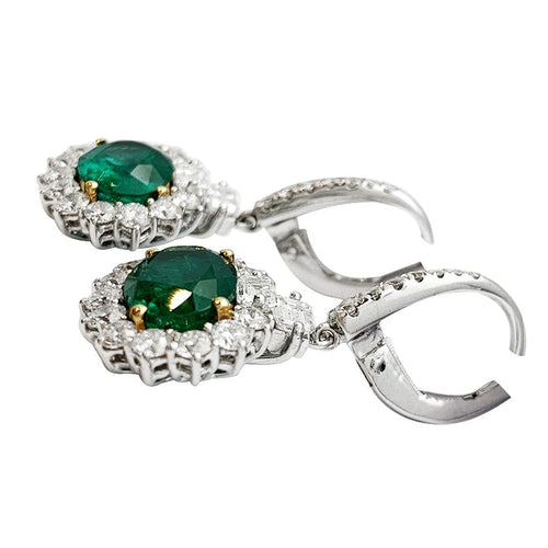 Boucles d'oreilles en blanc, émeraudes et diamants