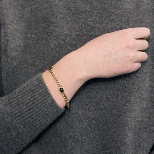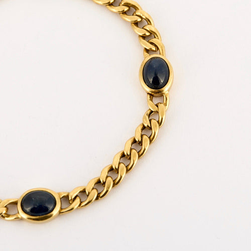 Bracelet en or jaune 18K (750 millièmes) à maille gourmette orné de trois saphirs cabochon en serti clos.