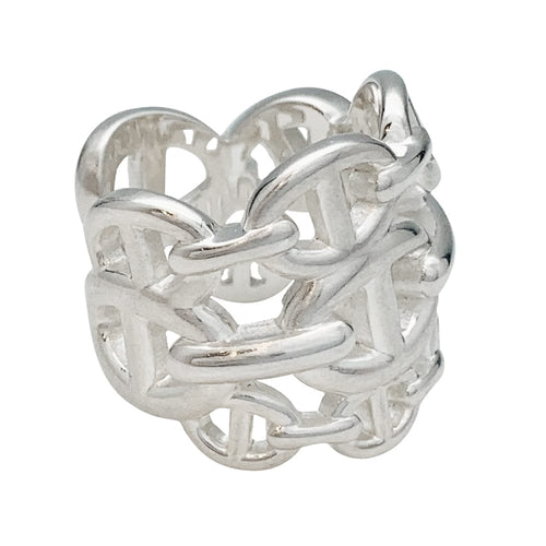Bague Hermès modèle "Chaîne d'ancre enchainée" en argent.