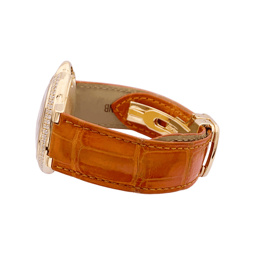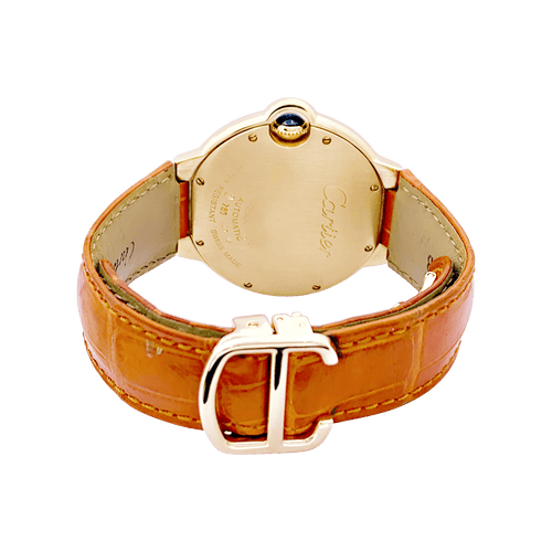 Montre Cartier "Ballon Bleu" or jaune, diamants, cuir.