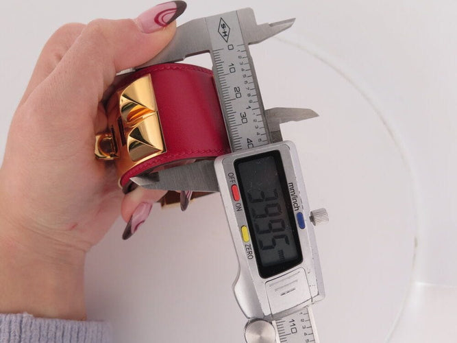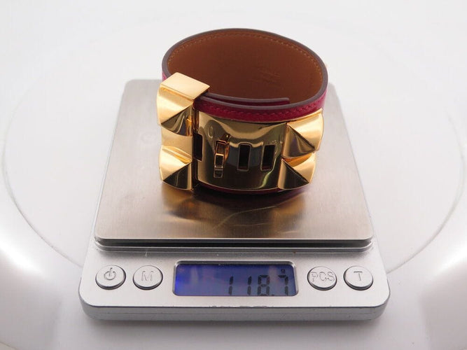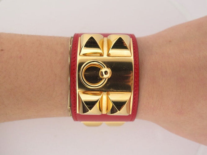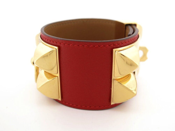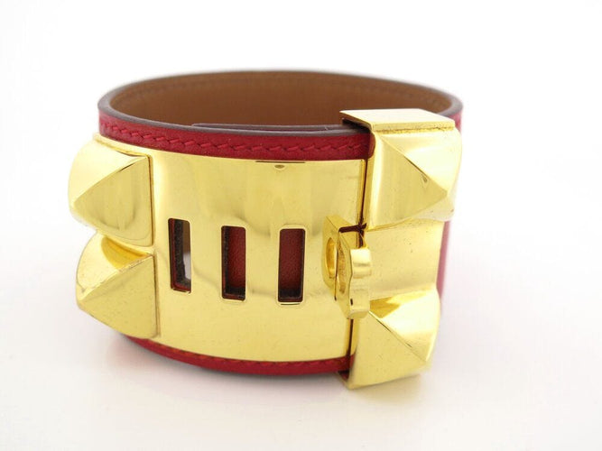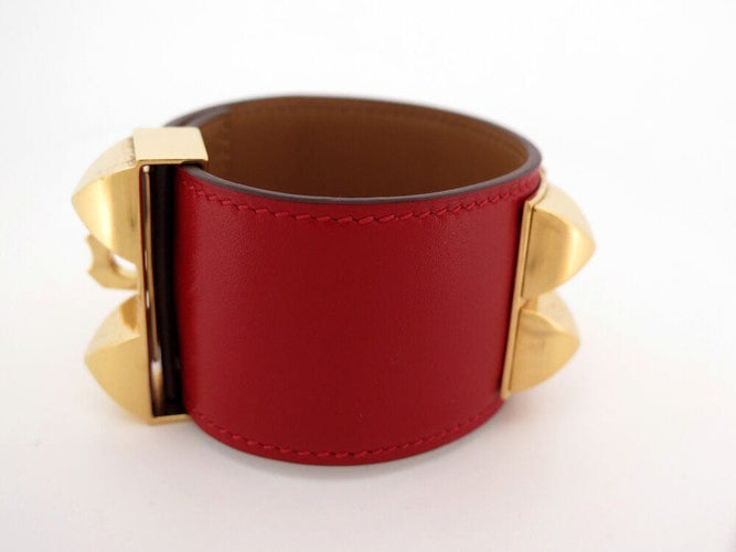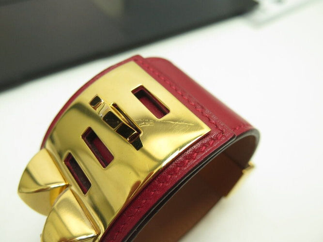 bracelet HERMES collier de chien medor t2 cuir swift rouge boite