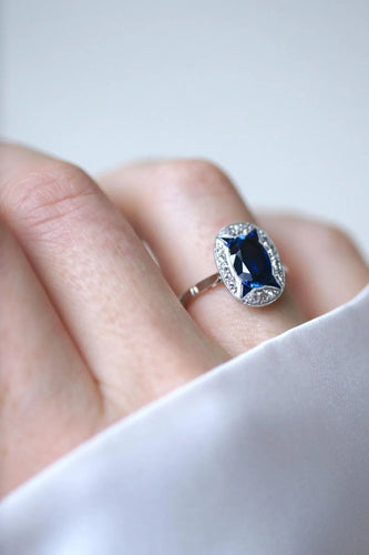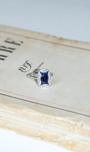 Bague Art Déco Saphirs Synthétiques et Diamants