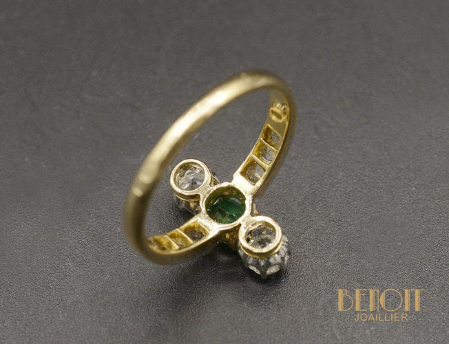 - Pierres : Emeraude ~ 0.40 ct, Diamants taille ancienne 2 x ~0,20 ct