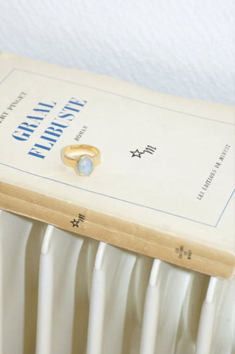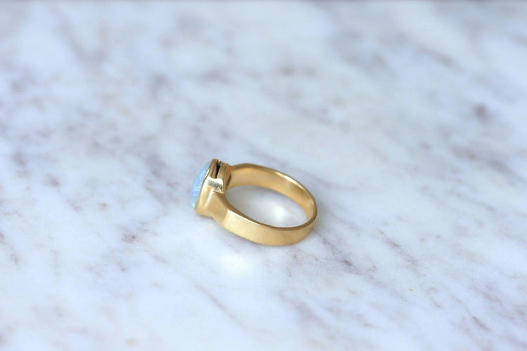 . Bague vintage en or jaune 18Kt, ornée d'un beau cabochon d'opale.