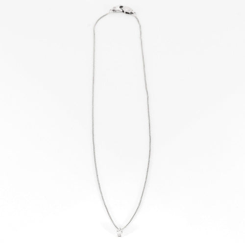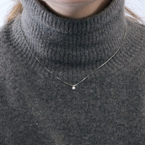 DAMIANI- Collier pendentif en or gris 18K (750 millièmes) composé d'une chaîne à maille vénitienne retenant un diamant rond taille brillant calibrant : 0.10 carat environ en serti quatre griffes. Fermoir mousqueton serti d'un petit diamant rond taille brillant.
