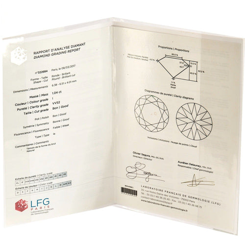 Pour tout achat sur 58 Facettes, vous recevrez un certificat d'expertise avec photo sous 24h après l'expédition du bijou ou sa remise en main propre. Ce certificat précise les caractéristiques du bijou (titrage de l'or, pierres précieuses, poinçons, signaturec etc.) et le nom de l'expert qui a réalisé l'expertise. Cliquez ici pour voir un exemple. Une facture détaillant les caractéristiques du bijou est également fournie.